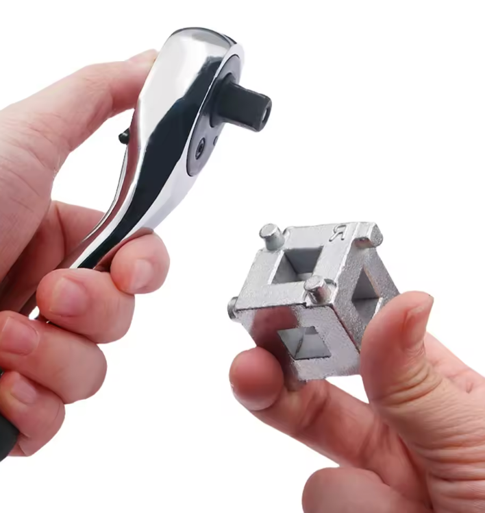 Esta dado para pistones está diseñada específicamente para facilitar el rebobinado del pistón en pinzas de freno de disco trasero. Ideal para talleres y profesionales, permite un ajuste preciso y seguro durante el reemplazo de pastillas de freno, asegurando un montaje correcto y eficiente. Fabricado con materiales resistentes, es una herramienta esencial para el mantenimiento y reparación de sistemas de freno en vehículos.